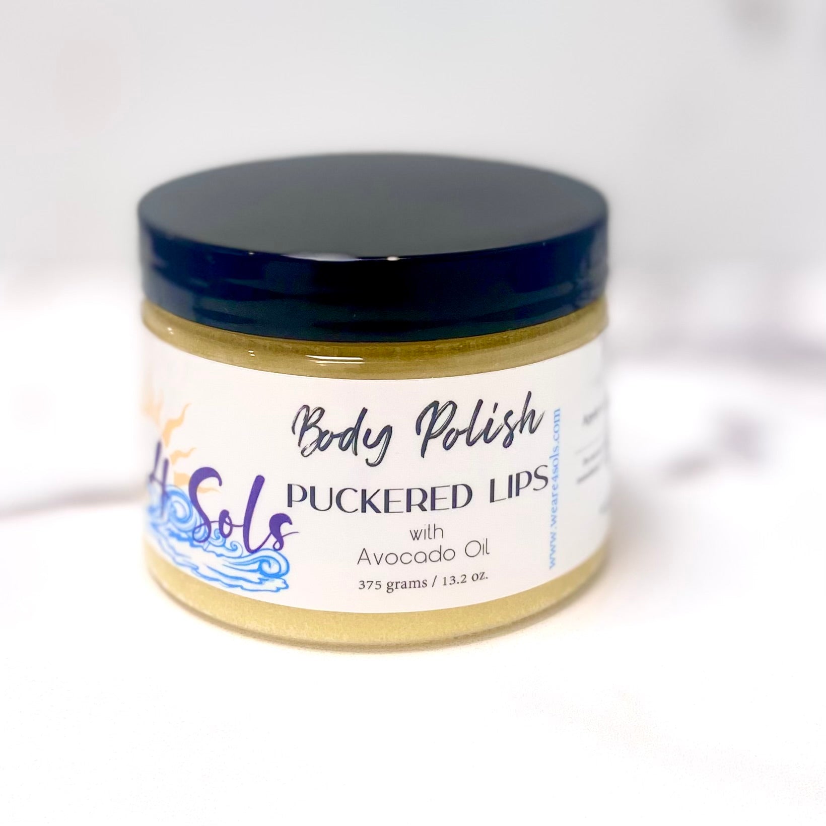 Buff away dry skin! This body polish is scented in a refreshing tart crisp slice of lemon, the aroma will uplift your shower. It has shea butter and avocado oil that will leave your skin soft and conditioned, while the sugar will gently exfoliate your dry skin.