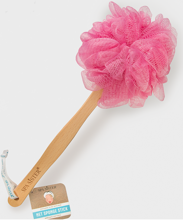 These are a large, full, high quality mesh loofah on a bamboo stick.