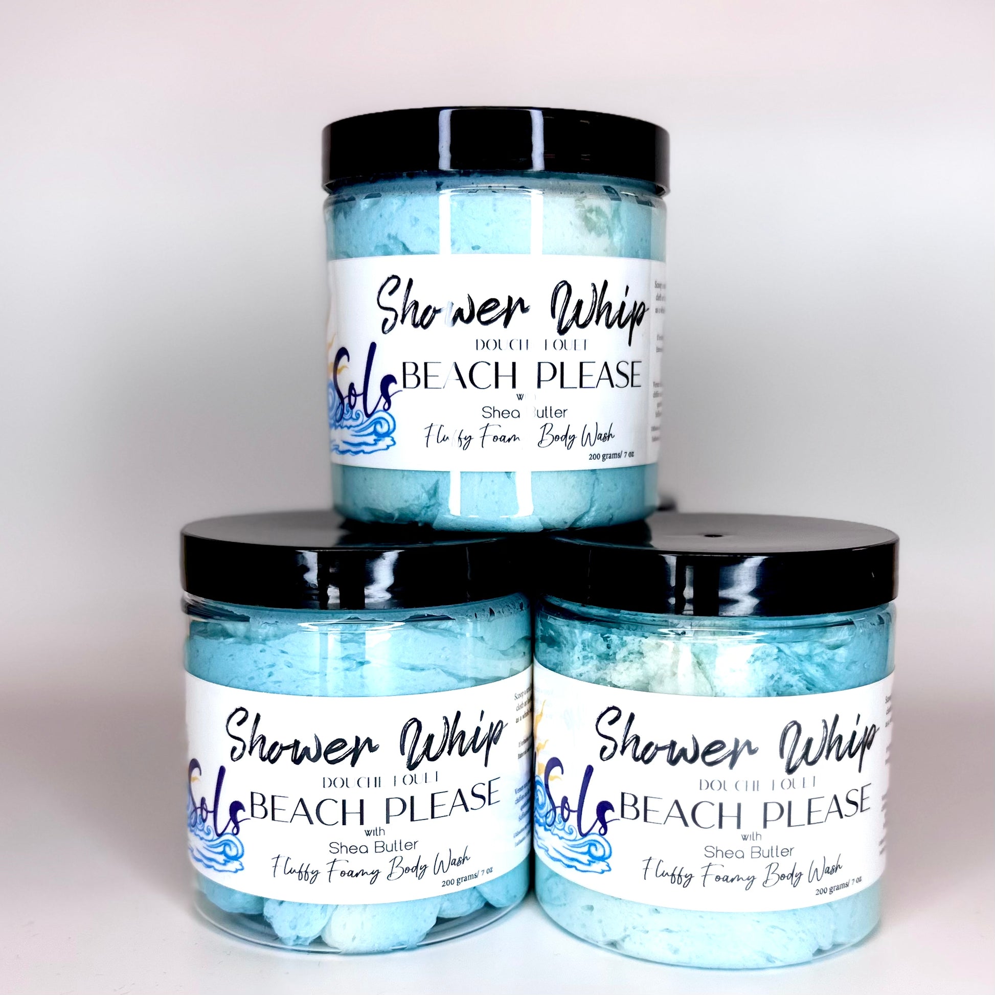 Shower Whip: Aqua, Stearic Acid, Cocamidopropyl Betaine, Glycerin, Persea Gratissima (Avocado) Oil, Butyrospermum Parkii (Shea Butter) Fruit, Kaolin, Phenoxyethanol, Caprylyl Glycol, Sorbic Acid, Kaolin, Parfum, Mica, Titanium Dioxide, Iron Oxide, Mica, Ultramarine Blue